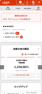 - 「主要口座お預り資産」と「残高サマリー」の2画面を統合し、1画面で確認できる情報量を増やしました。