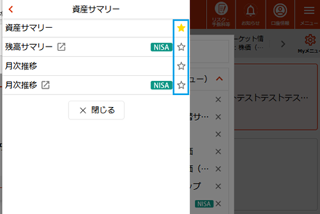 (お取引口座の開設状況等により、Myメニューに登録できる画面が限定される場合があります。)