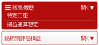 前営業日時点で約定済みであり、かつ特定口座の計算対象となるお預かり残高について、特定口座における取得金額を基にした評価損益を確認することができます。