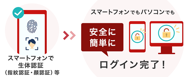 大和証券の資産管理アプリ「D-Port」では、スマートフォンの生体認証(指紋や顔認証)等を使ったパスキー認証を利用することで、安全かつ簡単にログインできます。