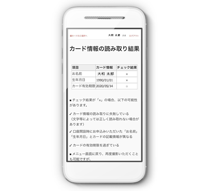 (2)口座開設時にお申込みいただいている情報とカードに記載されている情報が異なっている。