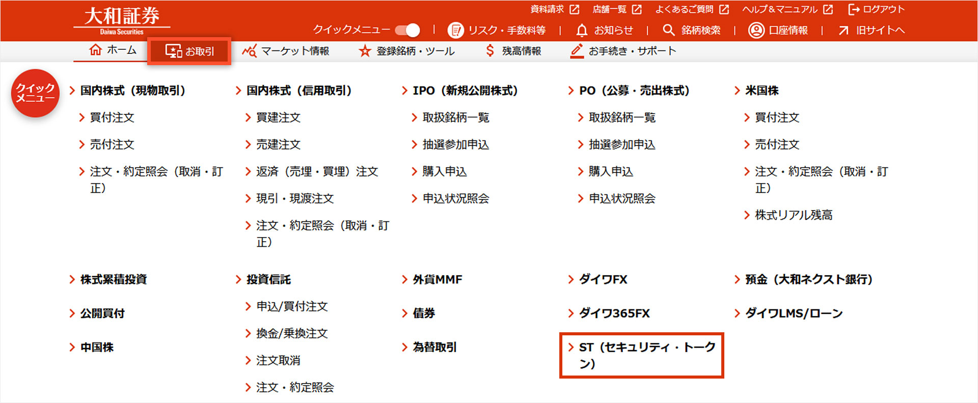 すでに発行されているSTの売買には、当社との相対取引、または、大阪デジタルエクスチェンジ株式会社(ODX)が運営する私設取引システム「START」(いわゆるPTS)へ当社が取次ぎを行なう委託取引の2種類の方法があり、銘柄によって異なります。詳細はお取引窓口までお問合わせください。