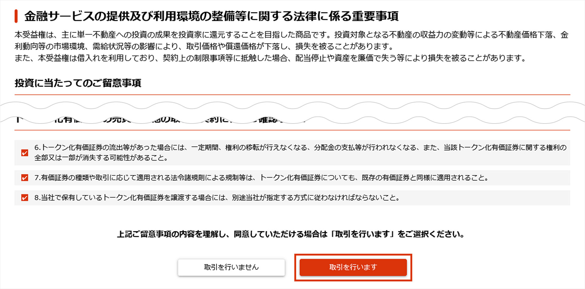 不動産セキュリティ・トークンのお取引にあたっての