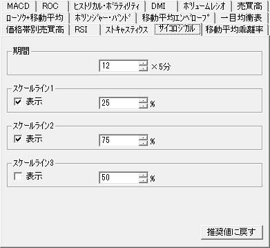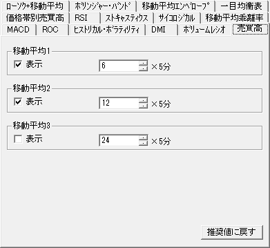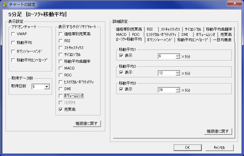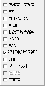 トレーディングボードのチャートでは、下記のテクニカル指標を表示することが可能です。