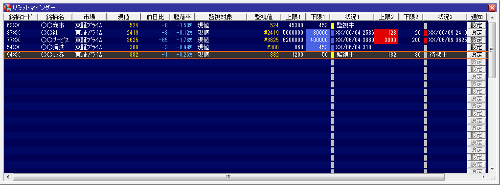 上部「銘柄登録リスト」の銘柄名をダブルクリックすると、